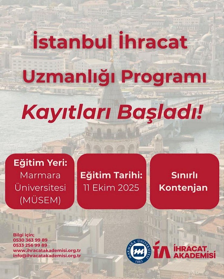 TOBB’dan alınan yazıda; Marmara Üniversitesi ev sahipliğinde, 11 Ekim – 30 Kasım 2025 tarihleri arasında İhracat Akademisi bünyesinde İhracat Uzmanlığı Programı düzenleneceği bildirilmiştir.